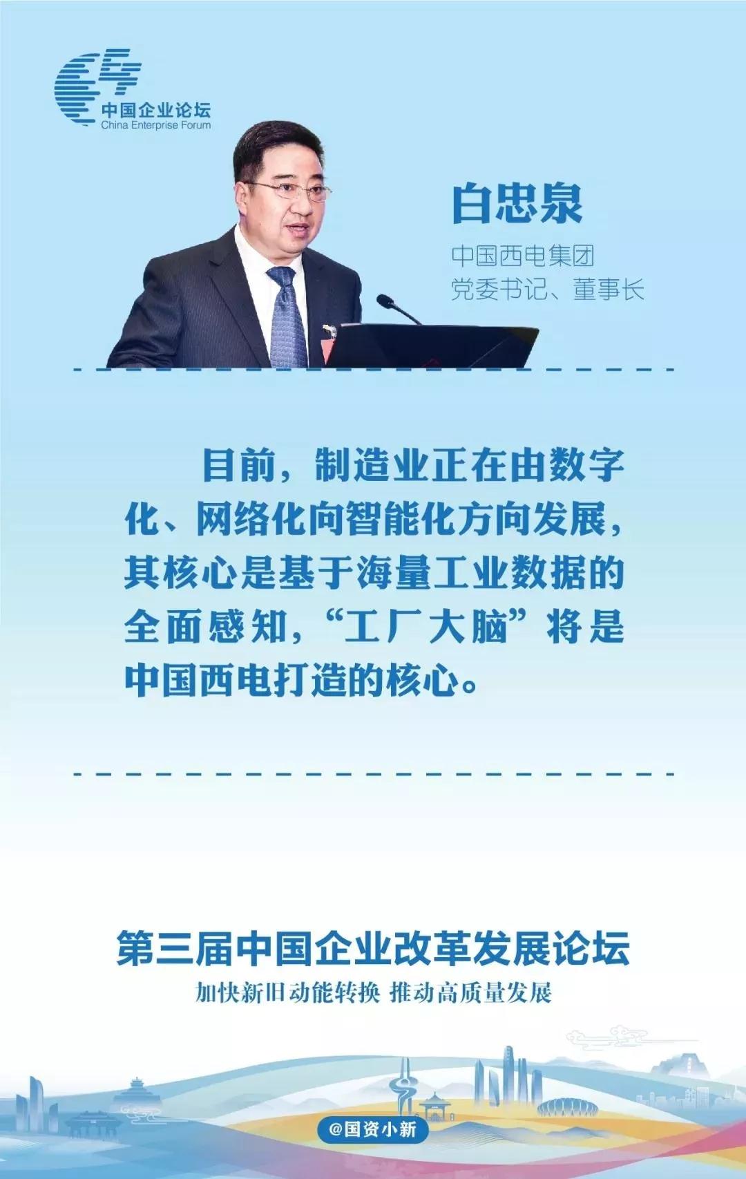 在11月2日-3日召開的第三屆中國企業(yè)改革發(fā)展論壇上,中國西電電氣股份有限公司黨委書記、董事長白忠泉發(fā)表了以《以數(shù)字化、智能化推動新舊動能轉(zhuǎn)換》為主題的演講,可謂金句連連,引起媒體廣泛關注,小編特意整理了部分,以飼讀者。